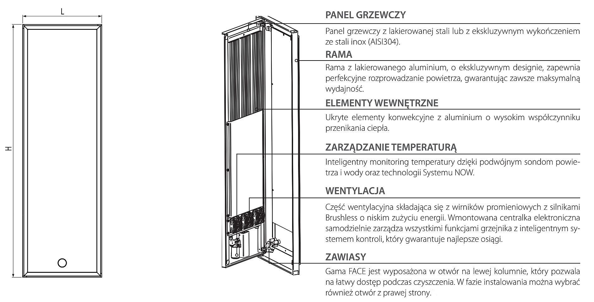 Grzejnik Irsap Face Zero_Air to niezwykły projekt Włoskiej firmy Irsap. Model wyróżniający się nie tylko nowoczesnym wzornictwem, ale również wydajną pracą i możliwością precyzyjnego zarządzania temperaturą. Grzejnik z płaskim frontem i możliwością wyboru koloru z szerokiej palety producenta. Dzięki możliwości wyboru kolorystyki, grzejnik można dopasować do wielu wnętrz, w których będzie się doskonale prezentował. Dodatkową zaletą jest możliwość otwarcia przedniego panelu w celu konserwacji.