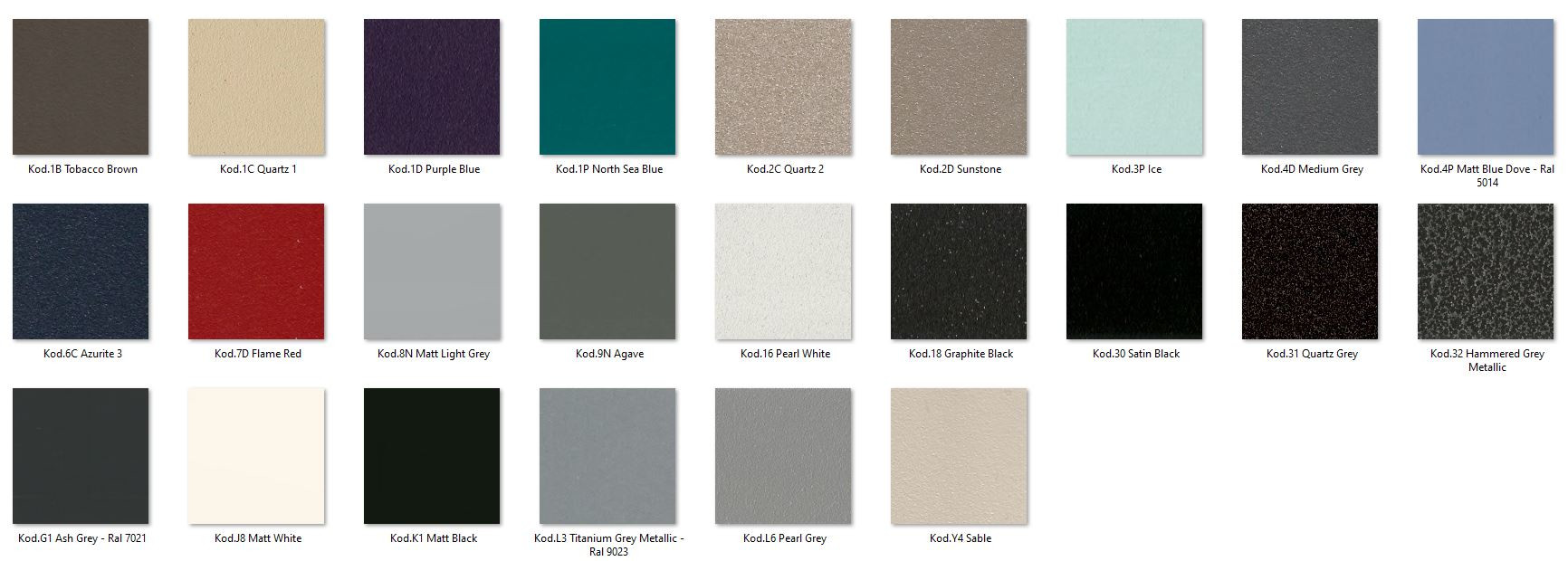 Wybierając opcję wykończenia "Face" możliwy jest wybór jednego z 4 wariantów kolorystycznych. Wybierając opcję kolor z palety producenta, prosimy o wybór osobno koloru dla ramy i płyty.