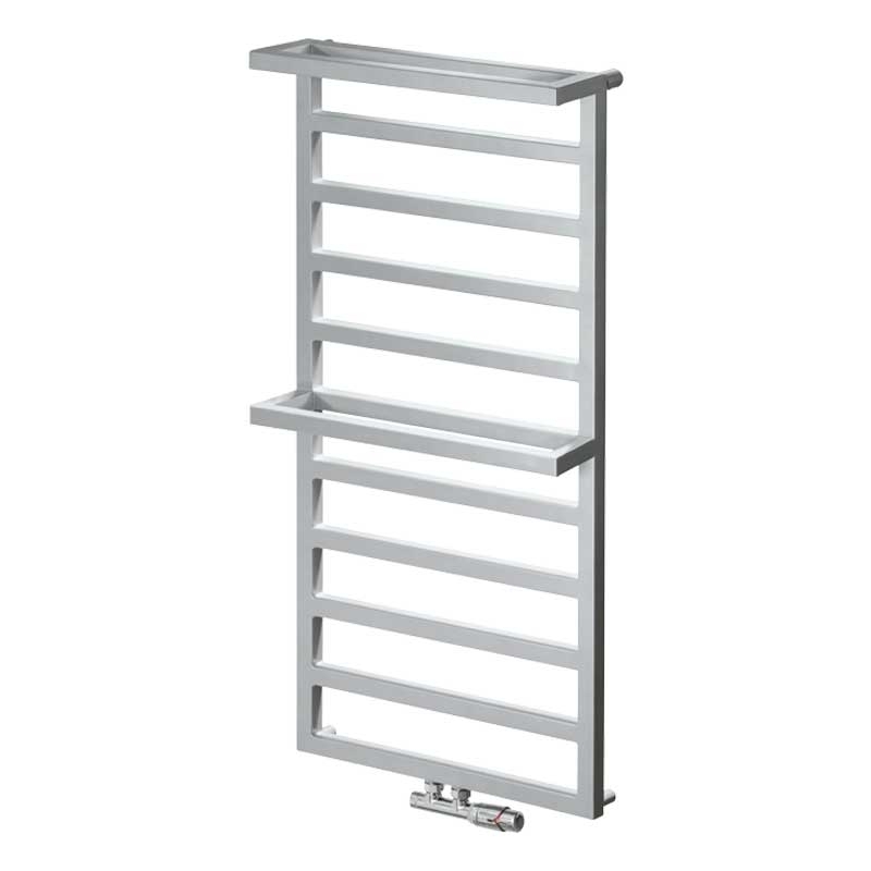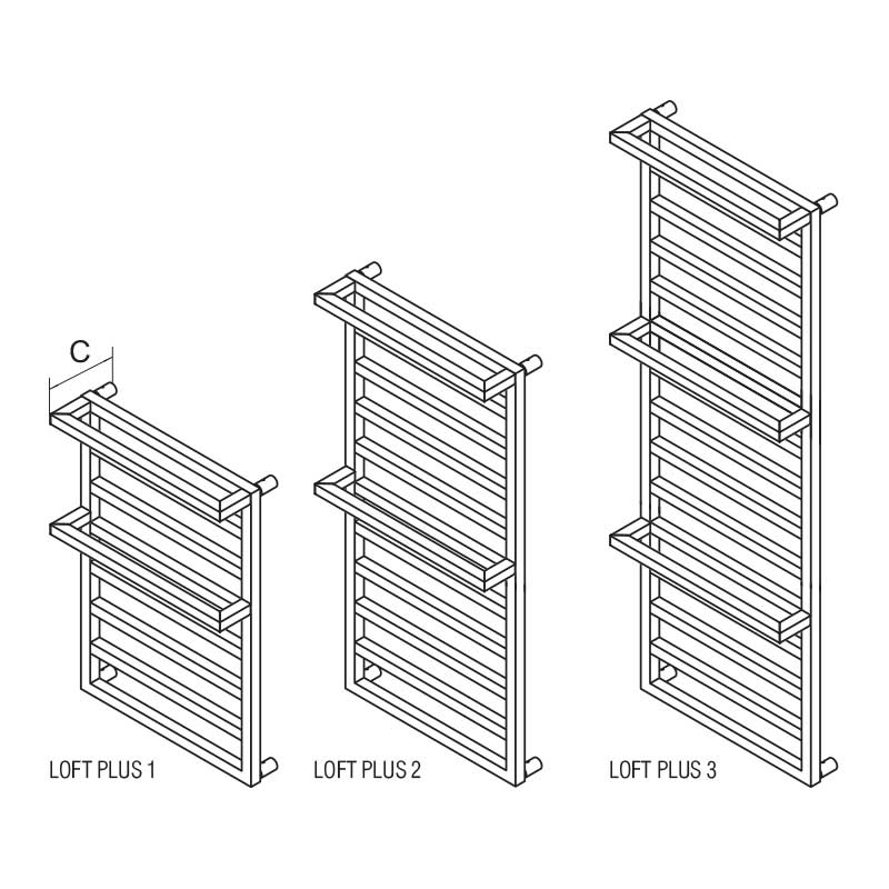 Radeco Loft Plus 2 to minimalistyczny grzejnik łazienkowy w postaci drabinki. Grzejnik spośród innych modeli drabinkowych wyróżnia atrakcyjny i prosty design. Podstawą konstrukcji jest prostokątna rama, która jest połączona poziomymi elementami grzewczymi. Dodatkowo grzejnik jest wyposażony w reling, na którym można zawiesić ręczniki.